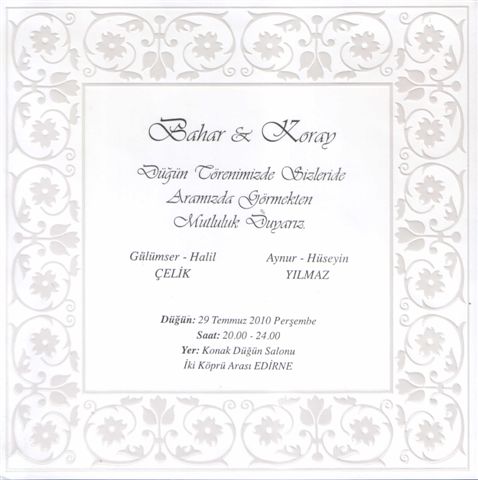 DÜĞÜNLERİMİZİN ÇAKIŞMAMASI İÇİN LÜTFEN DÜĞÜN TARİHLERİNİZİ SİTEMİZE BİLDİRİNİZ. 2123540@gmail.com