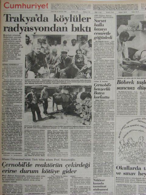 30 Nisan 1986 Çernobil Nükleer Santral faciasını ve köyümüze olan etkilerini daha önce sitemizde yayınlamıştık. O tarihlerde köyümüze gelen Cumhuriyet Gazetesinin haber ve fotoğraflarını sizlerle paylaşmıştık. Son günlerde Türkiye'de Mersin Akkuyu ' da nükleer santral kurulması gündemde. Hatta Mayıs ayında ilk kazma vurulması için geçen hafta Rusya ile anlaşma bile yapıldı. Bu arada Japonya'daki deprem sonrası gelen tsunami ve Fukuşima nükleer sanralinin infilak etmesi ve çevreye korkunç radyasyon yayması etkilemedi Türkiye'ye nükleer santral yapılması girişimlerini. 1986 yılında Çernobil patlaması olunca zamanın ileri gelenleri Rusların teknolojisi geri diyordu. Şimdi de Japonların teknolojisi eski ve geri deniliyor. Acaba bu 25 senede Ruslar çok çalışarak Japonları geçti mi teknolojide? Yoksa teknolojide çok ileri sandığımız Japonların teknolojisi çakma mı? Bekleyip göreceğiz bakalım, beklemekten başka yapacak birşeyimiz yok..