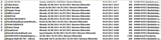 Muhtarlığımız tarafından belirli aralıklarla sitemize eklenenler hakkında bilgilendirme mailleri gönderilmektedir.Bu maillerin bazılarından okundu bilgisi dönmektedir.04.07.2011 Tarihli bilgilendirme mailimize dönüş yapan okundu bilgisi maillerinin bir kısmını sizlerle paylaşıyoruz.