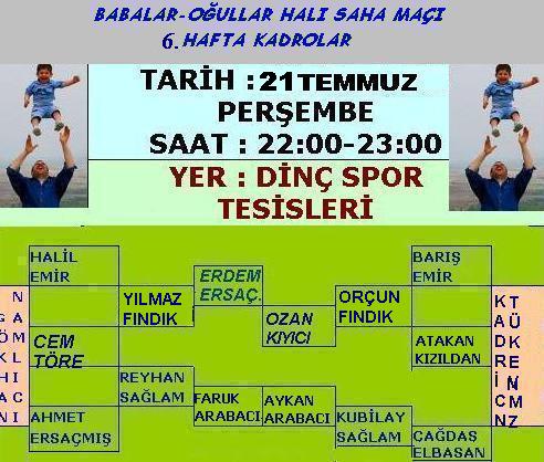 Babalar-Oğullar Maçı 6.Hafta Kadrolar