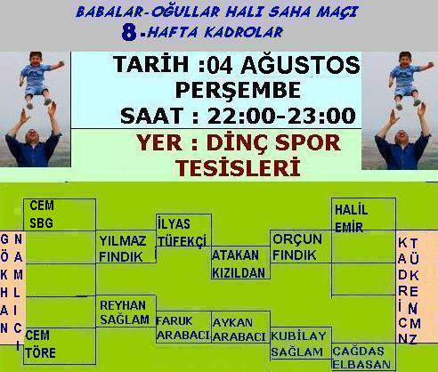 (Yeni...) Babalar-Oğullar Maçı 8.Hafta Kadrolar