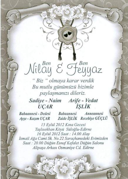 DÜĞÜNLERİMİZİN ÇAKIŞMAMASI İÇİN LÜTFEN DÜĞÜN TARİHLERİNİZİ SİTEMİZE BİLDİRİNİZ. 2123540@gmail.com