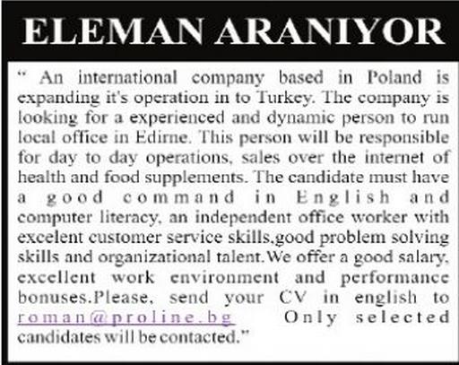 İngilizce Bilen Eleman Aranıyor Edirne
