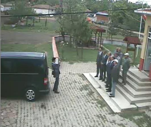 Kameramızdan köyümüzü ziyaret eden bir heyetin hatıra fotoğrafı çektirdiği görüntüsünü gördük..