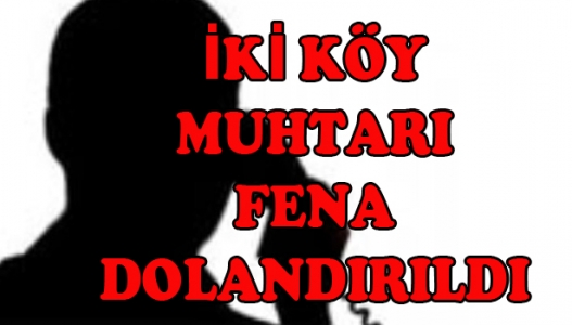 Çanakkale'nin Bayramiç ilçesinde 2 köy muhtarı, kendilerine telefonla arayıp emniyet müdürü ve savcı olarak tanıtan kişiler tarafından 58 bin lira dolandırıldıklarını söyledi. Çiftlikköyü muhtarı 45 yaşındaki İbrahim Çetin ile Çırpılar Köyü muhtarı 60 yaşındaki Ahmet Uzunoğlu'nu telefonda arayıp kendilerini emniyet müdürü ve savcı gibi tanıtan kişiler, bir grup tarafından adlarına kredi çekilip terör örgütüne ait hesaplara para transferi yapıldığını ve kendilerinden bu durumun giderilmesini sağlamak için para istedi. Bunun üzerine muhtarlar İbrahim Çetin 2 bin lira, Uzunoğlu ise ilçe merkezinde bir banka şubesi ile Ezine'de bulunan PTT Şubesi'nden toplam 56 bin lirayı verilen hesaba havale yaptı. Daha sonda dolandırıldıklarını anlayan her iki muhtarda ilçe emniyet müdürlüğü ve jandarmaya şikayetçi oldu. Bu arada kimliği açıklanmayan bir muhtarın ise altın bozdurmak için kuyumcuda bulunduğu sırada uyarılması üzerine dolandırılmaktan son anda kurtulduğu öğrenildi.