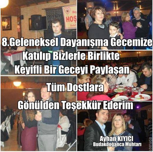 Köylüleri ile birlikte olmayı öncelik sayıp 8.Geleneksel Dayanışma Gecemize katılan tüm köylülerimize ve çok değerli misafirlerine katılımlarından dolayı gönülden teşekkür ederim.. Ayrıca şehir dışında yaşadıkları için katılma imkanı bulamayıp gecemize Telgraf,Telefon ve İnternet vasıtası ile mesaj gönderip iyi dileklerini paylaşan Reşat VATAN Dayıma,Şinasi ELBASAN Öğrtmenime ,Mali Müşavir Erdem YILDIZ kardeşime,Cem SAKARBALKANIGEÇEN ve Ozan KIYICI öğretmenlerimize çok teşekkür ediyorum..
