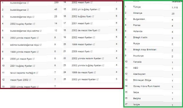 Ziyaretçilerimizin sitemize ulaşmak için Google arama motoruna en çok yazdıkları 25 sözcük ile yine sitemize ulaşanların hangi ülkeden ulaştıklarının istatsitiki bilgisini Google marifeti ile elde ettik ve sizlerle paylaşıyoruz..
