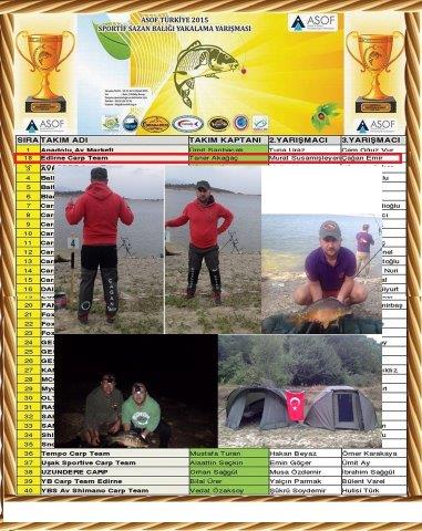 10 Eylül 2015 Perşembe günü sabah 07:00’ de başlayıp 13 Eylül 2015 Pazar günü saat 12:00’ de sona eren yarışmalarda ilimizi temsilen Edirne Carp Team takımın köylümüz Çağan EMİR ve arkadaşları Taner AKAĞAÇ ile Murat SUSAMİŞLEYEN oluşturdu.