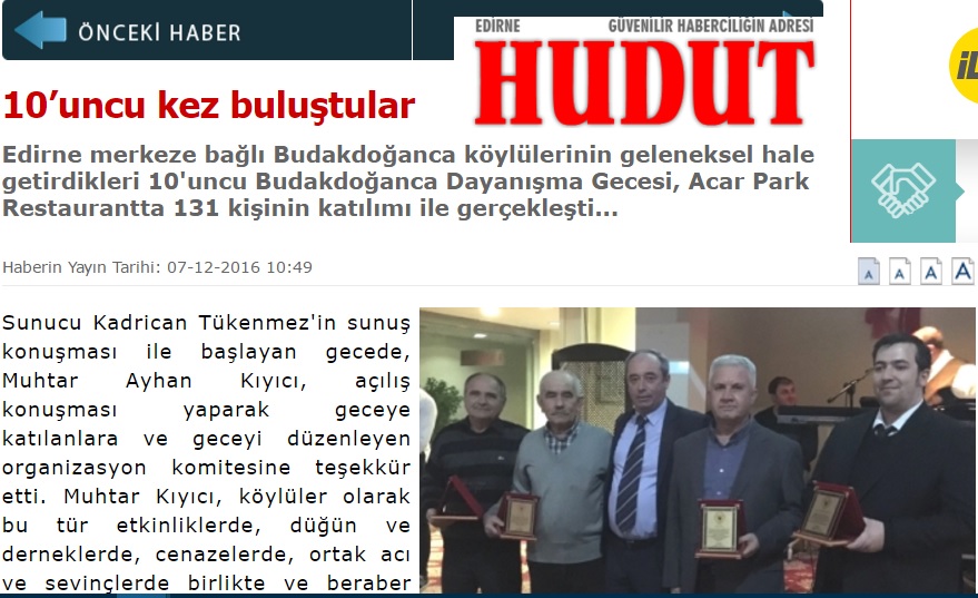 Sayın Budakdoğancalılar; Web sitemiz aracılığı ile  her türlü sevinçlerinizi paylaşabilirsiniz. Yeter ki bizlere iletin..Sizlere bir telefon kadar yakınız... Necmettin KIYICI : 0505 453 27 78 , Yılmaz FINDIK : 0535 424 61 12