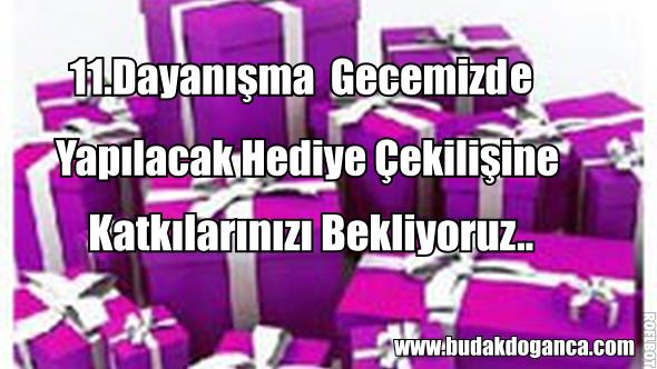 Gecemizde yapılacak hediye çekilişi için hediye vermek istiyorsanız yada hediye verme potansiyeline sahip eşiniz,dostunuz varsa 0-555-3504303 Numralı telefonda Eray KIYICI'ya ulaşıp gecemize katkı sunmanızı gönülden istiyoruz.