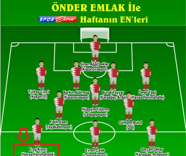Galip gelen takımda yer alan ve Haftanın En iyi Onbirine seçilen köy takımımızın önemli futbolcularından Eray KIYICI'yı gönülden kutluyoruz.
