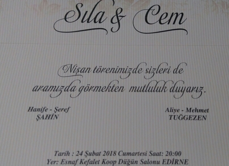 Köyümüz halkından Hanife ÜZEREM ŞAHİN & Şeref ŞAHİN çiftinin kızı Sıla ŞAHİN&Cem TUĞGEZEN ile 24 Şubatta nişanlanıyor. Genç çiftlere mutluluklar dileriz.