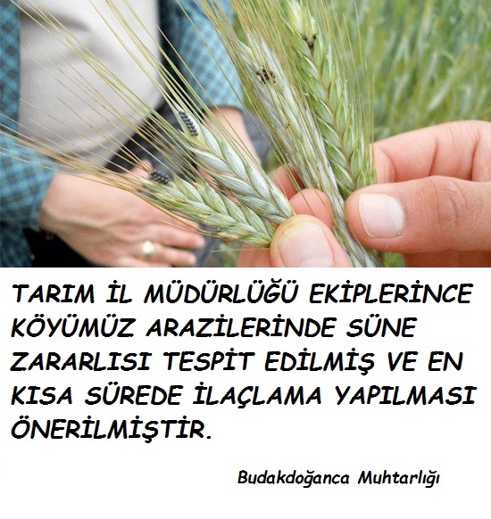 Süne nedir nasıl bir zararlıdır?Süne, yaklaşık 1 cm boyunda, toprak renginde, yassı vücutlu bir böcektir. Ülkemizin hemen her yerinde bulunur ve bazı yıllar önemli salgınlar yapar. Bilimsel ismi Eurygaster spp. Olan süne tahıllarımızın önemli bir zararlısıdır. Sokucu emici bir ağız yapısına sahiptir.