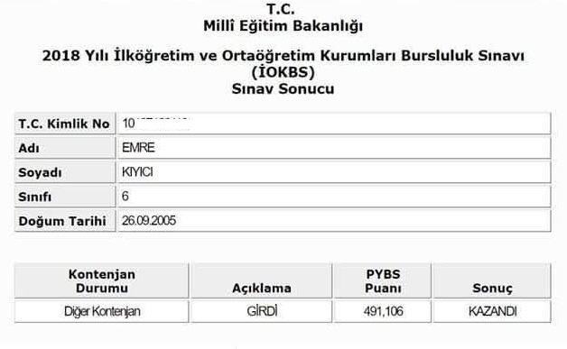 Küçük Emre KIYICI Bursluluk Sınavını Kazandı |