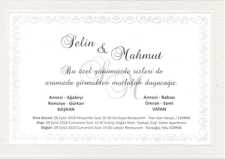 DÜĞÜNLERİMİZİN ÇAKIŞMAMASI İÇİN LÜTFEN DÜĞÜN TARİHLERİNİZİ SİTEMİZE BİLDİRİNİZ. 2123540@gmail.com