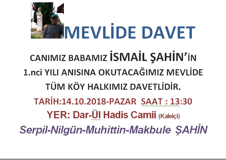MEVLİDE DAVET ( ŞAHİN AİLESİ )
