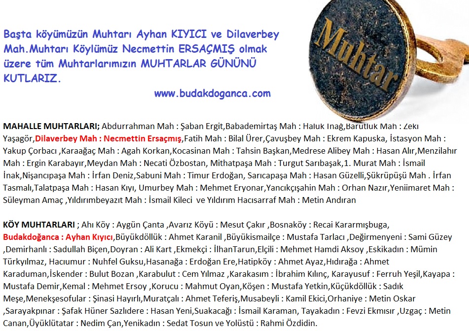 Sayın Budakdoğancalılar; Web sitemiz aracılığı ile  her türlü sevinçlerinizi paylaşabilirsiniz. Yeter ki bizlere iletin..Sizlere bir telefon kadar yakınız... Necmettin KIYICI : 0505 453 27 78 , Yılmaz FINDIK : 0535 424 61 12
