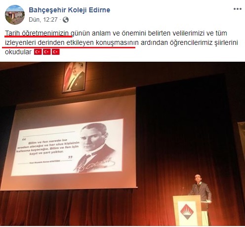 Bahçeşehir Kolejinin Cumhuriyet Bayramı Etkinlikleri Sosyal Medya paylaşımında Tarih Öğretmenimiz Ferit Boztuna ile ilgili bölüm bizleri gururlandırdı.