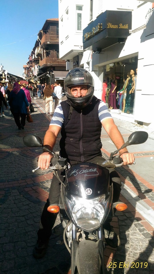 Saraçlar Caddesinde denk geldim, zaten çoğu zaman denk geliyorum da bu defa başında kask olduğu için son anda tanıdım..