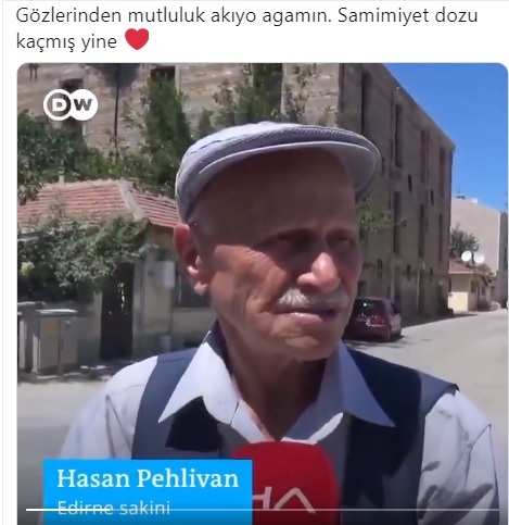 Edirnemizde bir sokak röportajı yayımlayan DW Televizyonunun paylaşımını Twitter hesabına taşıyan "suyun öte tarafı" adlı hesap röpertajın bir anda binlerce izleyici sayısına ulaşmasını sağlamış...