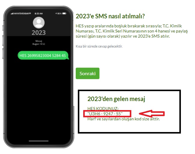 2- SMS yöntemi ile HES yazıp boşluk bırakarak sırasıyla; T.C. ...