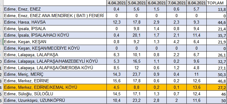 Son 5 günde köyümüzde Metrekareye 27,2 Litre yağmur düşmüştür.