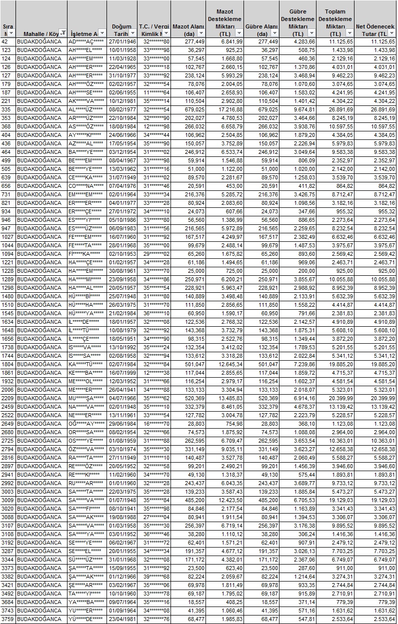 2021 Yılı Mazot Gübre Desteklemeleri Askı Listesi