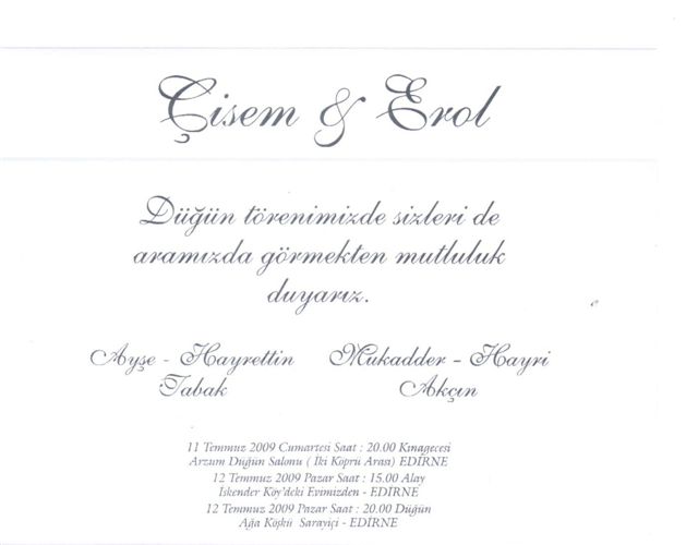 DÜĞÜNLERİMİZİN ÇAKIŞMAMASI İÇİN LÜTFEN DÜĞÜN TARİHLERİNİZİ SİTEMİZE BİLDİRİNİZ. 2123540@gmail.com